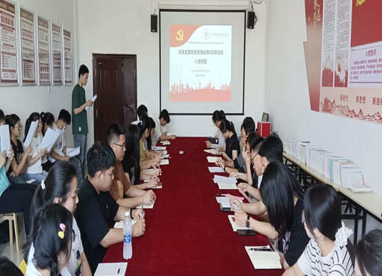 会议伊始,万佳欣同志对会议议程进行简要说明,并报告了出席会议的党员情况。贺劲松、伍健、吕江微、晏文婷、池敏、胡溢晶等6位发展对象依次向大会报告了自己的基本情况并宣读《入党志愿书》,从思想动态、对党的认识、入党动机、现实表现以及未来发展等方面向党组织作出汇报,坚定地表达了想要加入中国共产党的愿望和决心。入党介绍人逐一介绍了这6名发展对象在培养考察期间的基本情况,并表达了是否建议其接收为预备党员的意见。