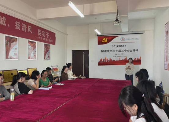 为切实加强党的建设,提升党员队伍的政治素质和思想觉悟,强化党性意识、增强凝聚力,更好地发挥党员先锋模范作用。SUNBET申博官网第一党支部于2024年9月24日在党员活动室开展“支部书记讲党课”,第一党支部书记王佳乐同志为全体党员讲授“6个关键点!解读党的二十届三中全会精神”专题党课。