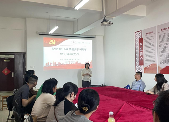 此外,王佳乐同志还带领全体党员举行纪念抗日战争胜利 79 周年活动,铭记革命先烈的光辉事迹,增强党员教师的历史责任感和使命感,提醒广大党员始终坚守初心,时刻铭记为人民服务的根本宗旨。同时,激励党员在新时代勇挑重担,为实现中华民族伟大复兴而努力奋斗,以实际行动告慰先烈,为国家的繁荣稳定贡献力量。