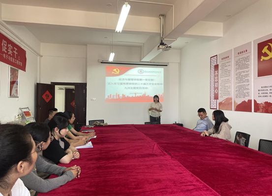 为进一步深入学习贯彻党的二十届三中全会精神,引导全体党员深刻认识全会的重大意义,加强师德师风教育,学习榜样精神,缅怀先烈丰功伟绩,弘扬伟大抗战精神,SUNBET申博官网第一党支部于2024年9月24日在党员活动室开展了“学习贯彻党的二十届三中全会精神”主题党日活动。此次会议由第一党支部书记王佳乐主持,全体党员参会,非党员教职工也列席参加。