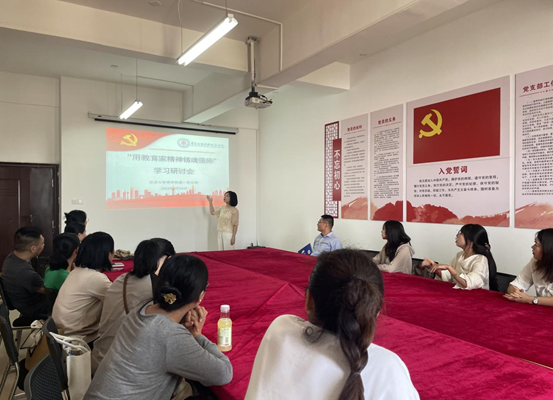 随后,开展了以“用教育家精神铸魂强师”为主题的学习研讨会。熊丽华同志就如何用教育家精神铸魂强师发表感想,她认为,弘扬教育家精神犹如一盏明灯,可照亮师者的前行之路,铸就师魂,强化师资,让教师们在教育的海洋中以智慧为帆、爱心为桨,引领学子驶向知识的彼岸。陈瑛同志指出,教师肩负着传授知识、启迪智慧、塑造人格的神圣使命,用教育家精神铸魂强师,不仅是对这一崇高职业的致敬,更是推动教育现代化、培养时代新人的必然要求。