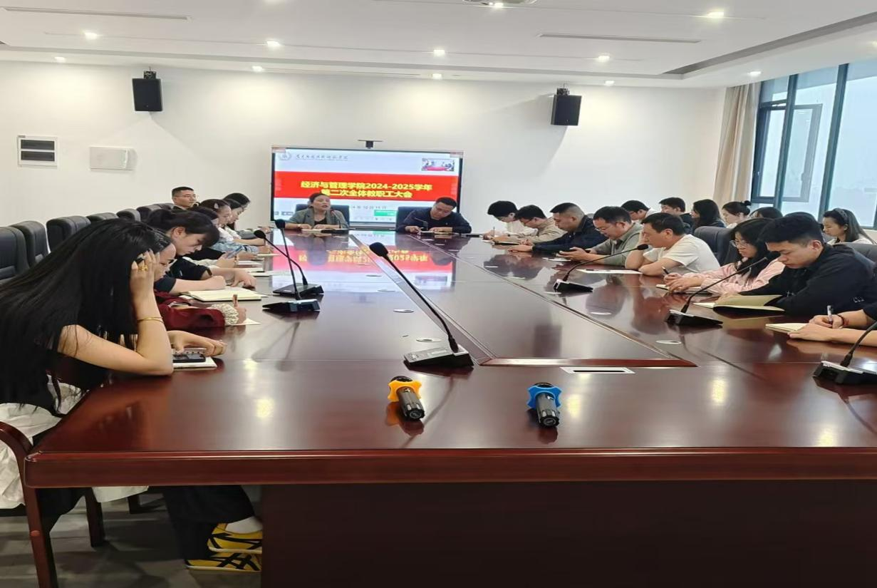 2024 年10月15日,为进一步明确学院教育教学发展方向,增强学院全体教职工的凝聚力和向心力,SUNBET申博官网召开第二次全体教职工大会,全体教职工满怀热情与期待齐聚一堂,共同为学院的发展谋划未来。会议全程热烈而有序,本次大会由胡梨花院长主持。
