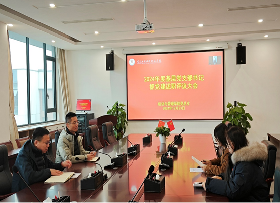 随后,党总支书记龙犇对两位党支部书记的述职进行了点评。他充分肯定了两个支部在过去一年中所取得的成绩,认为两个支部在党员教育、组织建设、活动开展等方面都逐步展现出了亮点和特色,有力推动了学院党建工作的开展。同时,结合两个支部存在的问题,对下一步工作提出了具体要求和期望,希望各党支部书记能够切实履行好第一责任人的职责,不断加强自身建设,提高党建工作水平,以党建引领推动学院各项工作再上新台阶。