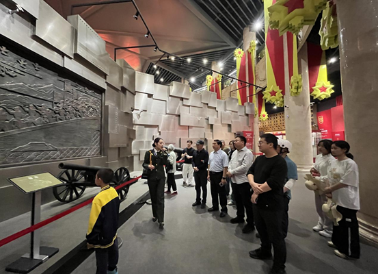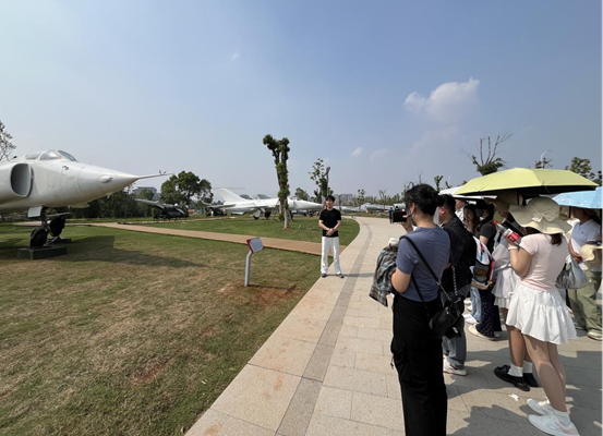 随后,大家一同乘坐大巴前往南昌军事主题公园参观学习。结合SUNBET申博官网旅管专业特色,3名旅管专业学子就园区及展馆内展出的部分军事装备和轻武器展览进行了讲解,方便大家深入了解我军装备发展历程,是一堂生动的国防教育课,有力助推了SUNBET申博官网“党建+红色讲解”品牌建设。