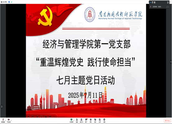 为进一步强化党员党性修养、增强凝聚力与战斗力,SUNBET申博官网第一党支部于7月11日在腾讯会议线上开展“重温辉煌党史,践行使命担当”七月主题党日活动,会议由第一党支部书记袁江波主持,支部党员参会。