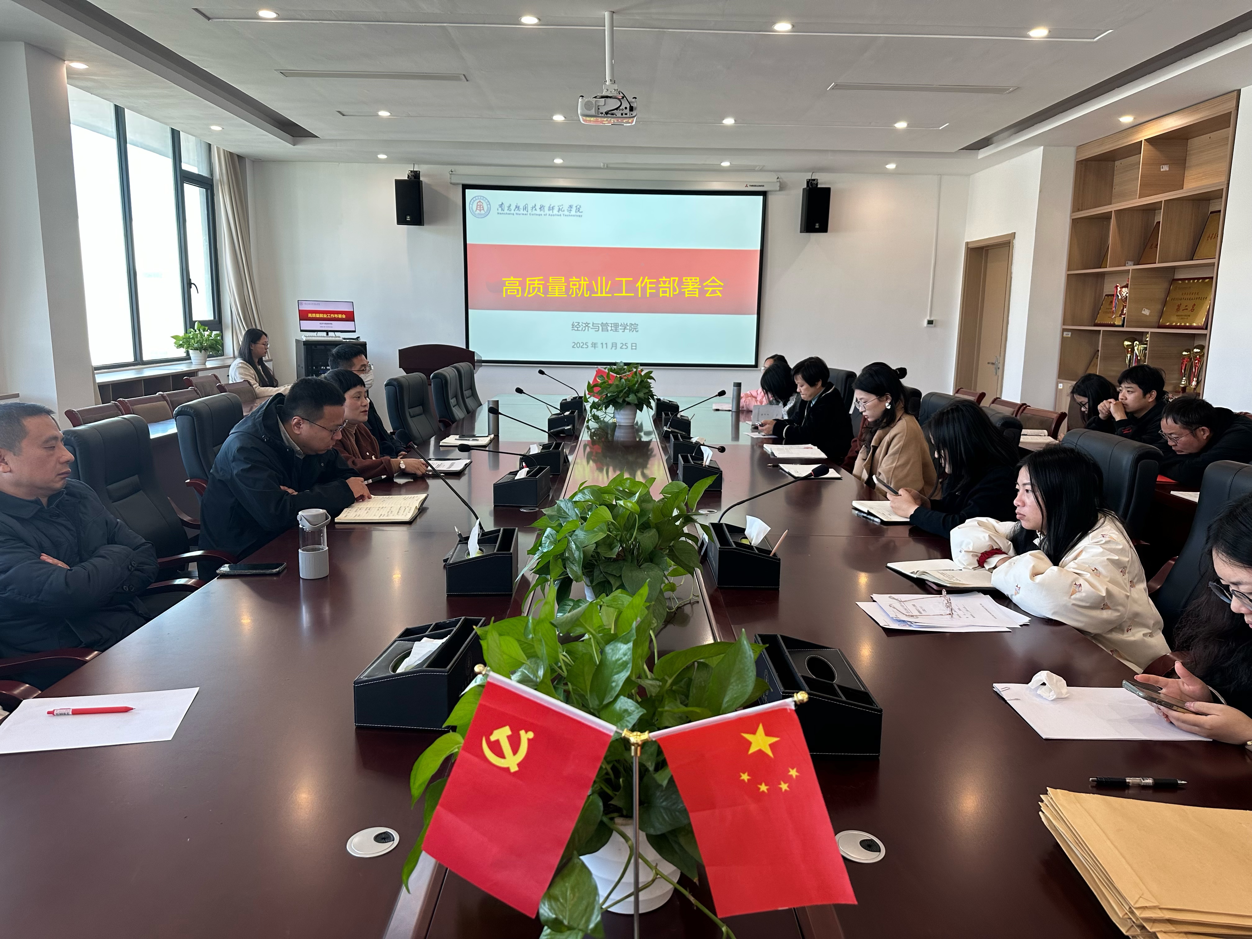 为推动落实学校毕业生高质量就业工作会议要求,切实提升SUNBET申博官网人才培养质量与毕业生就业竞争力,11月25日下午,SUNBET申博官网在赣新校区学院506会议室召开了2026届毕业生高质量就业部署会。学院院长胡梨花、党总支书记龙犇、副院长袁江波、党总支副书记朱红梅出席会议,全体辅导员、专任教师参加。会议由胡梨花主持。