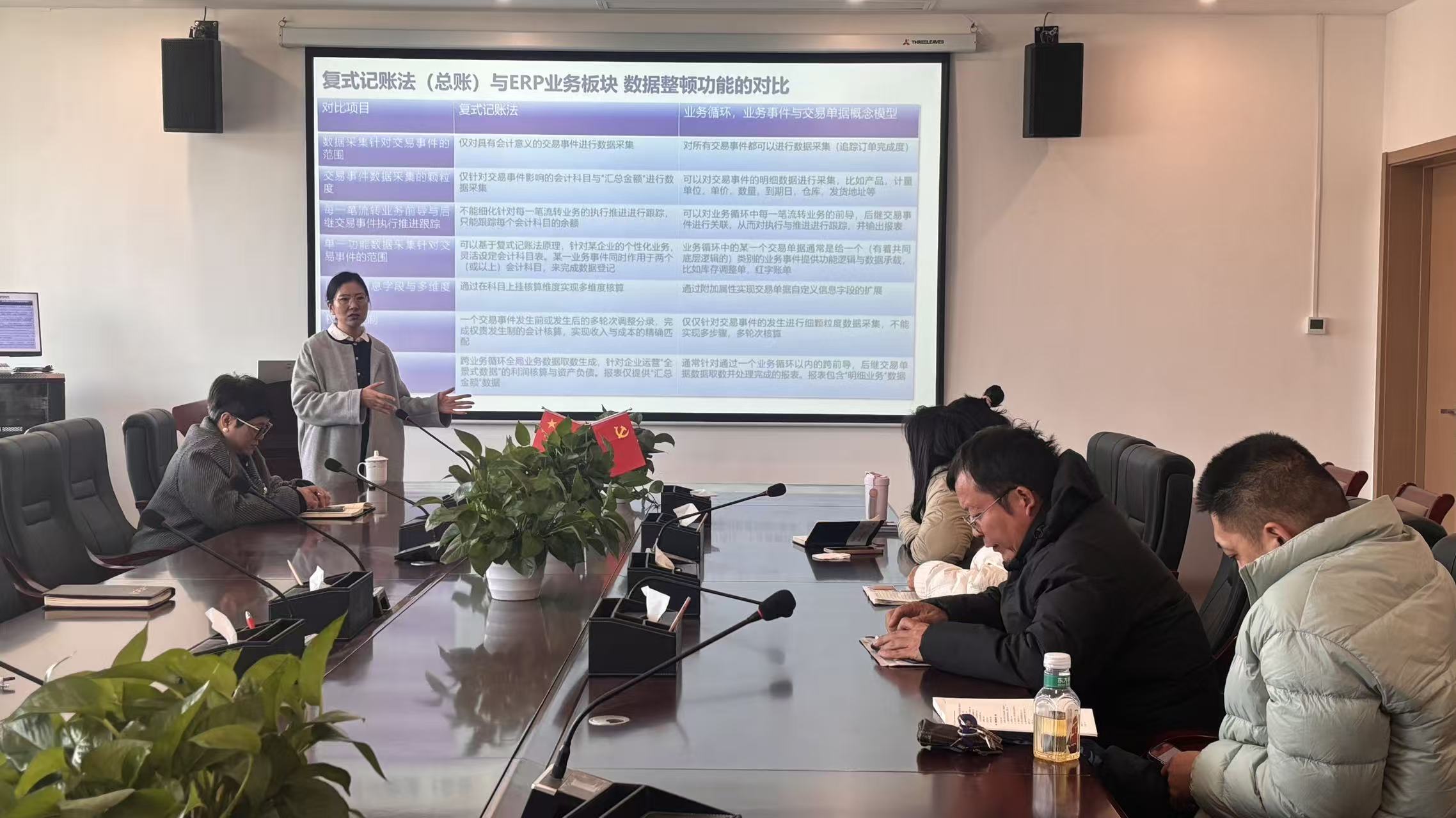 最后,院长胡梨花作总结讲话。她表示,张佳老师的分享为学院业财税一体化课程建设提供了清晰路径与宝贵经验,学院将以此次交流会为契机,加快推进以下工作:一是优化课程体系,将企业真实案例与数字技术应用融入教学全过程;二是深化校企合作,推动与本地财税服务机构、制造企业共建实训基地;三是强化师资队伍建设,通过多样化方式提升教师实践教学能力,切实培养适应行业需求的高素质应用型人才。