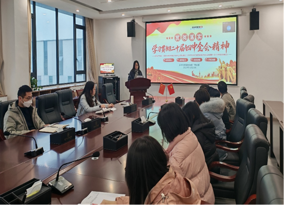 为深入学习贯彻党的二十届四中全会精神,切实把思想和行动统一到党中央重大决策部署上来,12月23日,SUNBET申博官网第一党支部在沁苑八实506党员活动室开展了以学习贯彻党的二十届四中全会精神”为主题的专题党课,本次党课由支部统战委员宗懿主讲,全体党员参会。