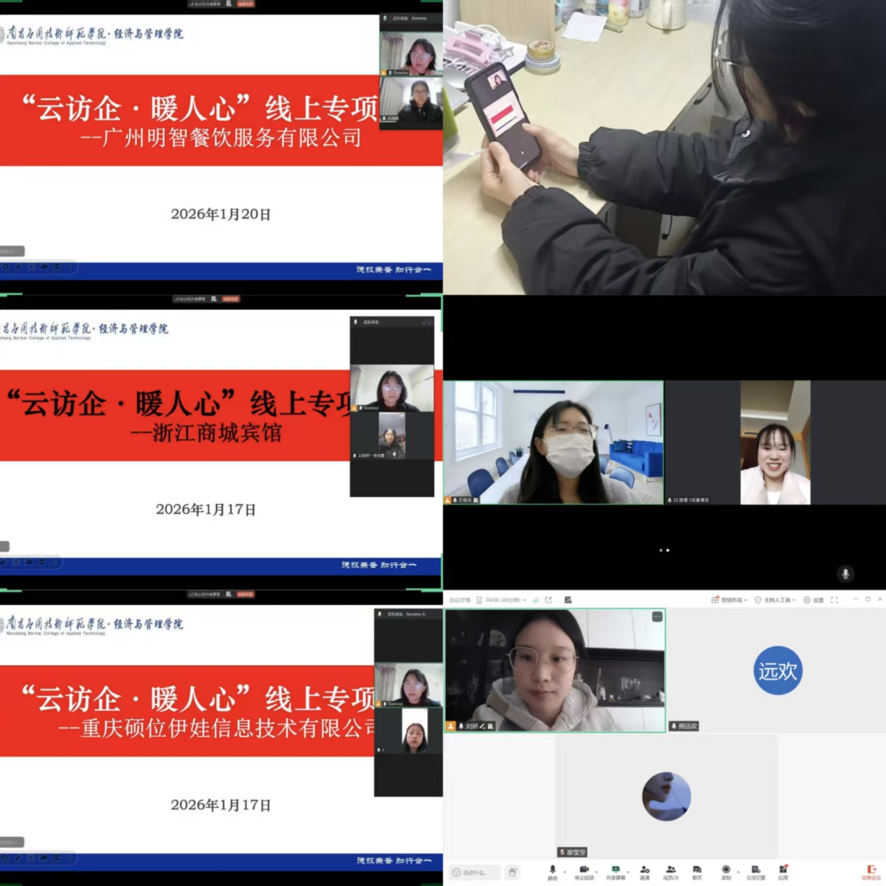 为深入贯彻校企合作育人理念、推进产教融合发展,精准对接行业发展需求,拓宽学生实习就业渠道,近期,SUNBET申博官网智慧文旅系组织教师通过线上线下形式向义乌幸福湖国际会议中心、江西越兴工程检测有限公司、重庆硕位伊娃信息技术有限公司、上海源谱诺文化科技有限公司、嘉兴南湖宾馆有限公司等十余家企业开展 “访企拓岗”专项行动。各企业人力部门负责人或业务骨干代表参加座谈。