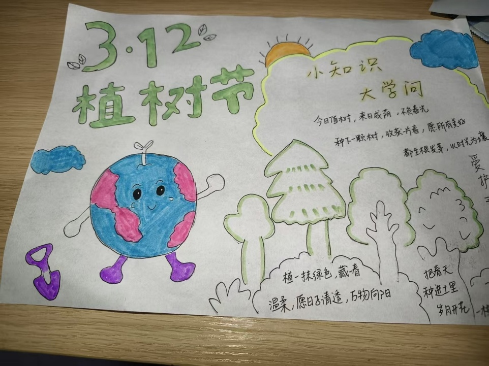 本次活动以手抄报创作为主,面向全体学生,通过作品征集、展示与评选,将生态理念传播与实践体验相结合,鼓励同学们围绕植树节由来、植树益处、校园护绿技巧、生态保护倡议等内容发挥创意,用笔墨传递绿色理念。