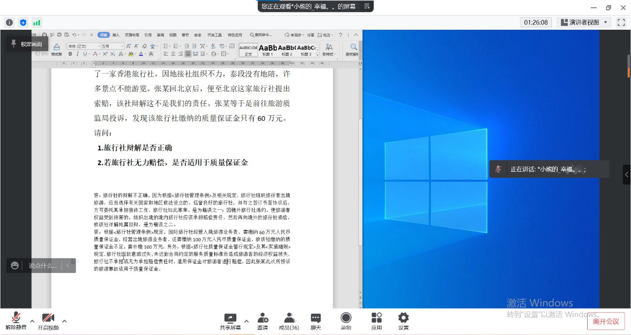 2022年3月16号上午,SUNBET申博的熊桃慧老师给我们带来了一堂轻松愉快的线上旅游法规课程。在上课开始前,熊老师积极备课并提前熟悉线上教学软件;在上课期间,她目标明确地带我们回顾了上节课的内容;逻辑清晰地将课程中的理论知识与实际经验相结合。同时在课程中提出问题,以增加课堂的互动性。我们也紧跟老师的思维,积极回答老师的提问。在疫情期间,虽然我们无法面对面的交流和锻炼,但老师仍心系学生,多次嘱咐我们要加强锻炼和注意身体健康。