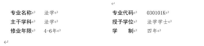 专业基础课程:法理学、宪法学、中国法律史、刑法Ⅰ、民法Ⅰ、习近平法治思想概论。
