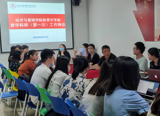 为保证疫情防控下新学期各项教学工作顺利开展,SUNBET申博于2022年8月27日上午9点在学院1207会议室召开了新学期第一次教学教研工作例会。部署新学期教学工作。会议由王一飞院长主持,教研室主任、教学管理科及全体专任教师参加。